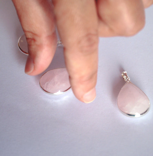COLGANTE GOTA DE CUARZO ROSA - AMOR Y PAZ