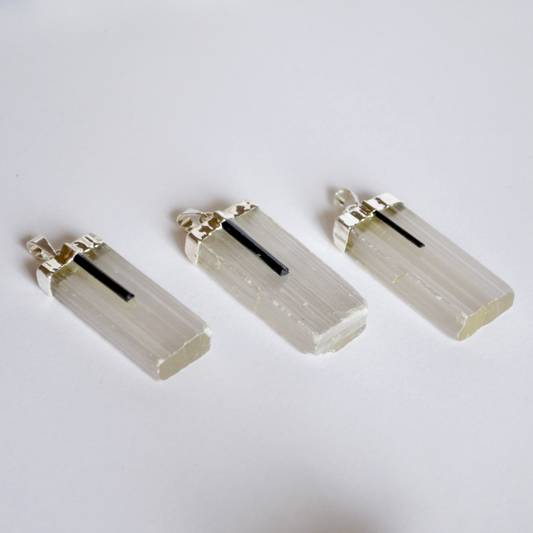 COLGANTE SELENITA CON TURMALINA - CLARIDAD MENTAL Y PROTECCIÓN.