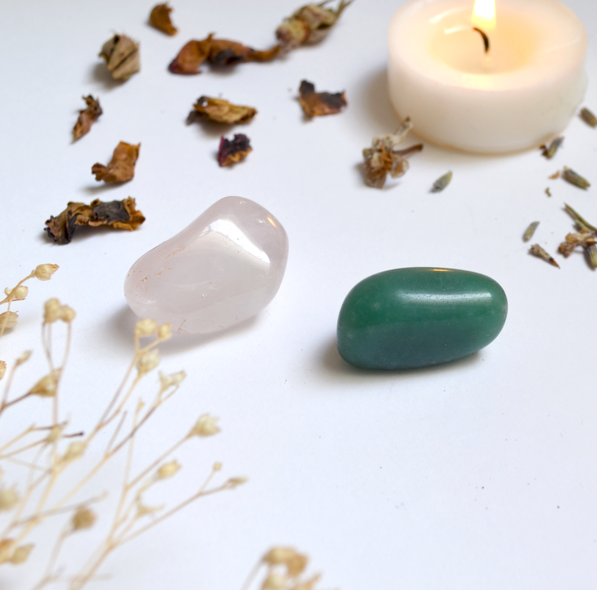 La combinación de Cuarzo Rosa y Cuarzo Verde crea una sinergia única que te ayudará a: